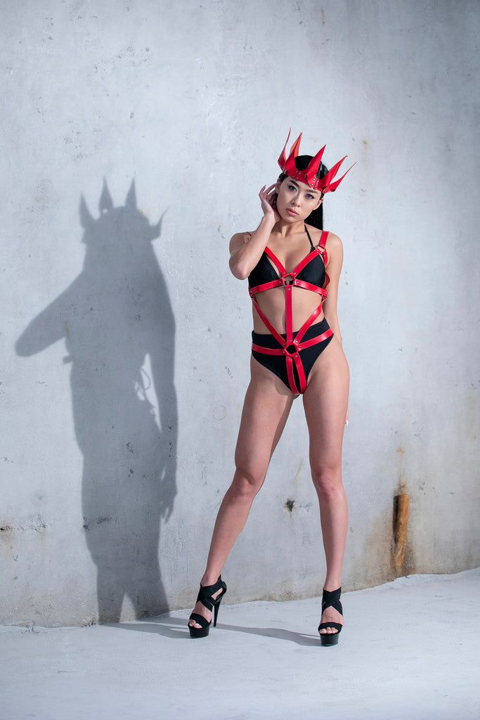 Full Leather Harness Set "Arsia" & Garters, Handcuffs, Choker
