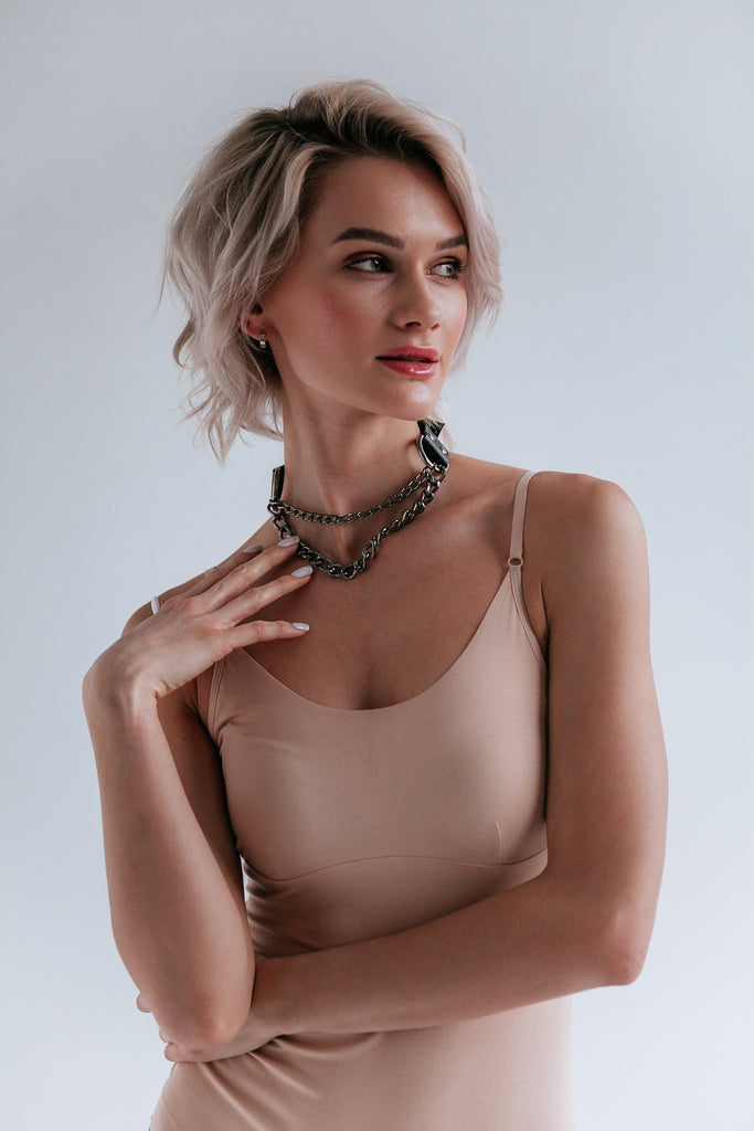 This choker is definitely differing from those you have seen before. The unique design is eye-catching. Being made of two parts - leather and chain one - it is super adjustable. You may change its size depending on your desire and feeling. It can tightly lay to a neck or be slightly free on it. The chain part looks like a necklace on a sweet neck. The truth is, every woman loves necklaces, and what about trying something special.