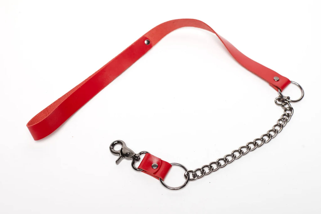 Discover the allure of this leather harness bondage set, designed for both beginners and experienced players seeking new sensations. The set features a neck choker or collar that doubles as a stylish choker necklace, paired with elegant leather bracelets (handcuffs) and a durable bondage chain leash for ultimate control and play.