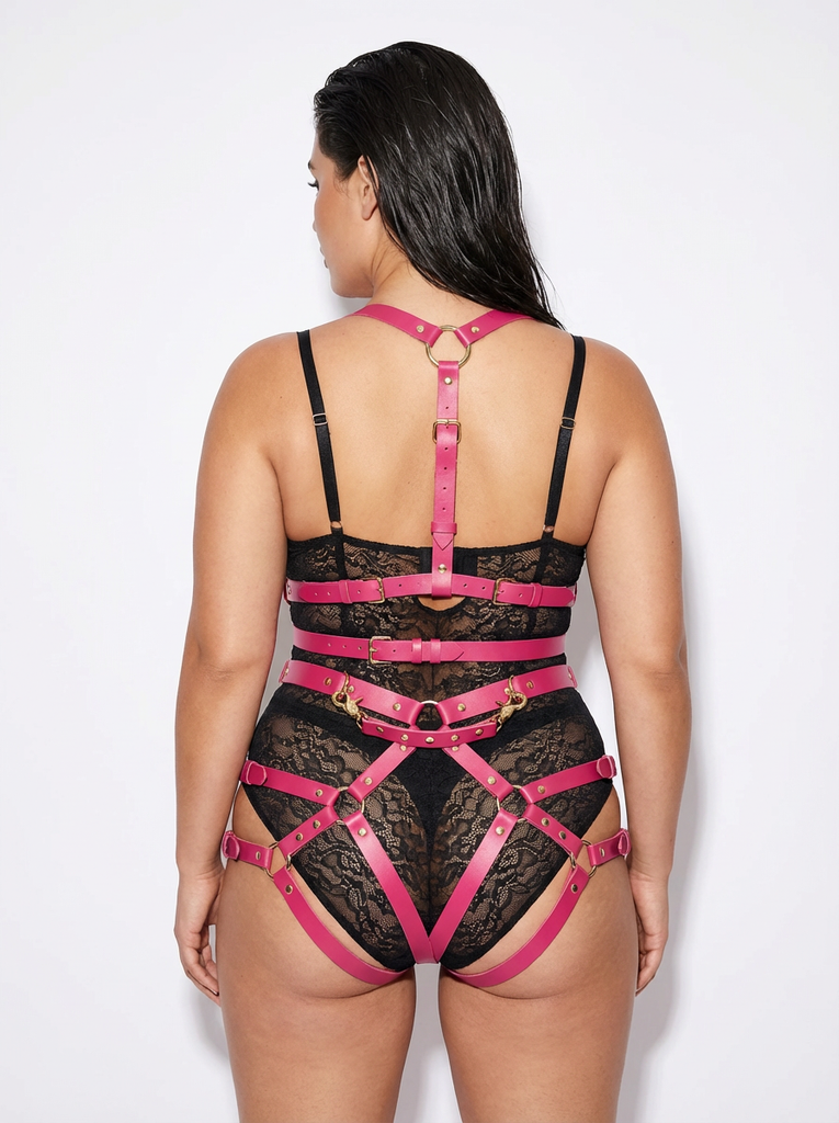 LEATHER HARNESS SET "VELVET" RED / GOLD