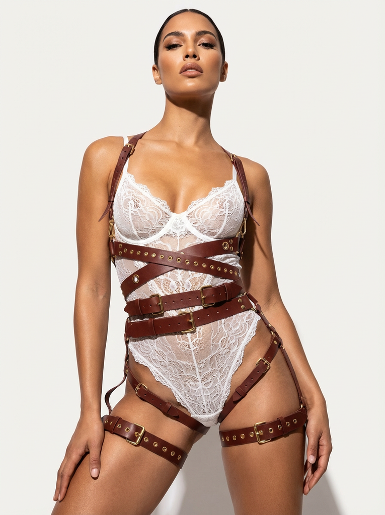 LEATHER HARNESS SET "VELVET" BLACK / GOLD