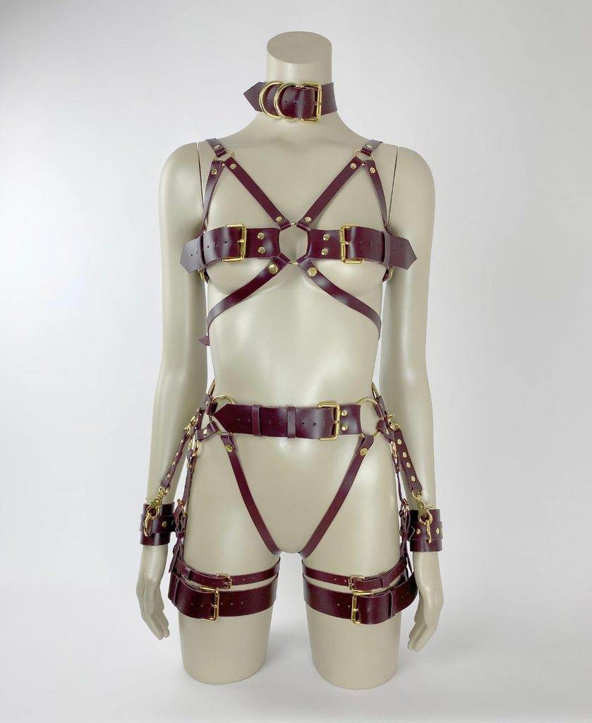 Leather Body Harness Set with Handcuffs — Handmade Luxury Lingerie Set