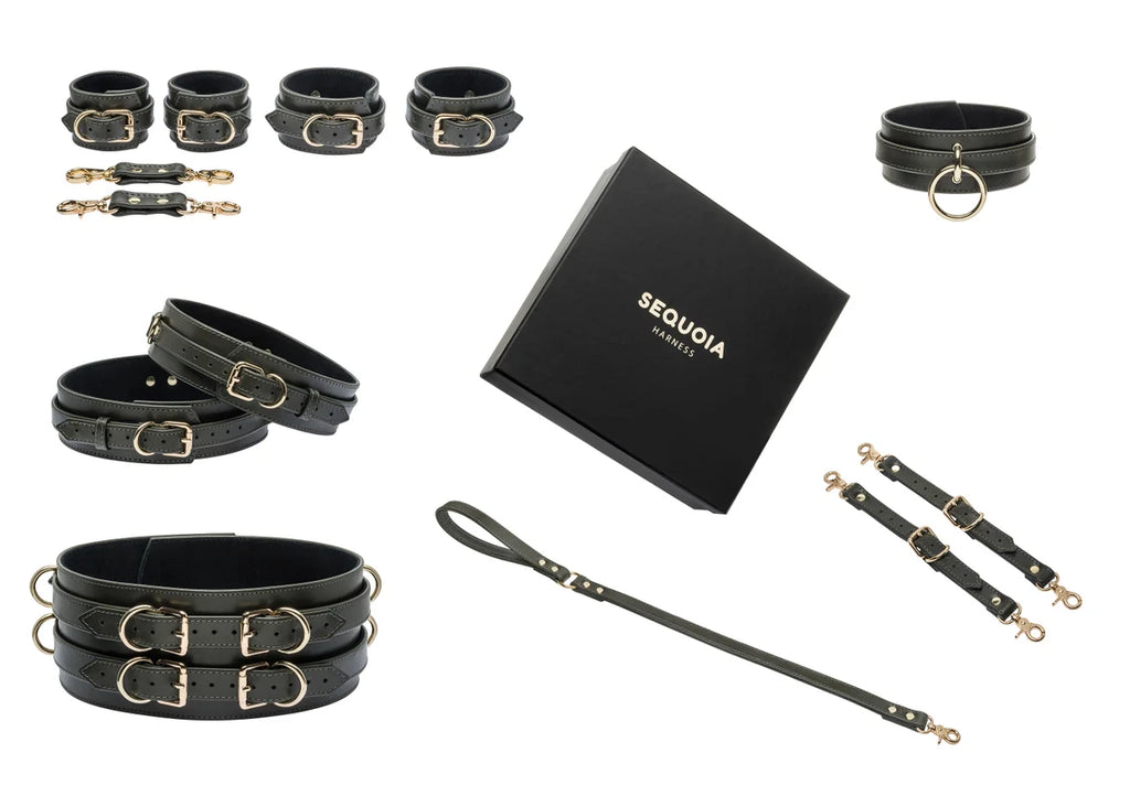 • Full Set consist: Waist belt, Thigh Cuffs (with 2 connectors), Handcuffs (with 2 connectors), collar and leash;