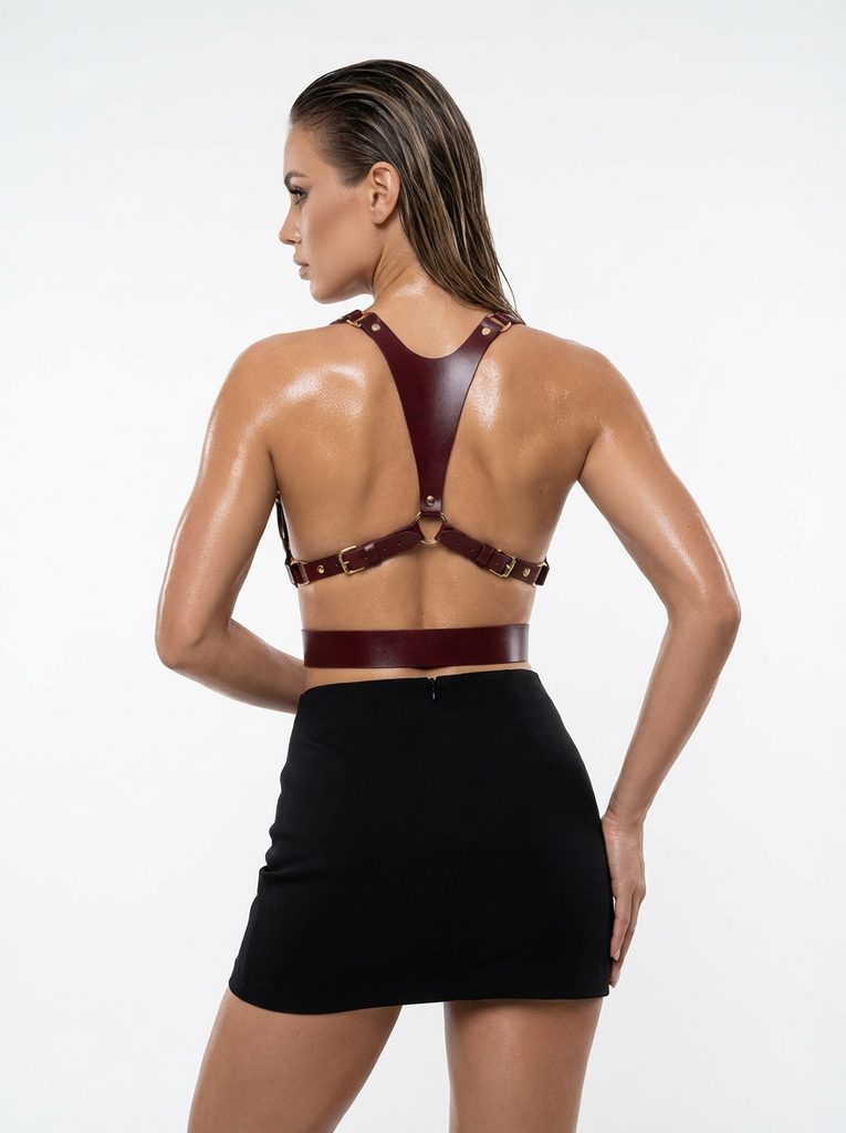This bold piece pairs effortlessly with dresses, shirts, blouses, or coordinating leather accessories, adding structure and sensual sophistication to any outfit.