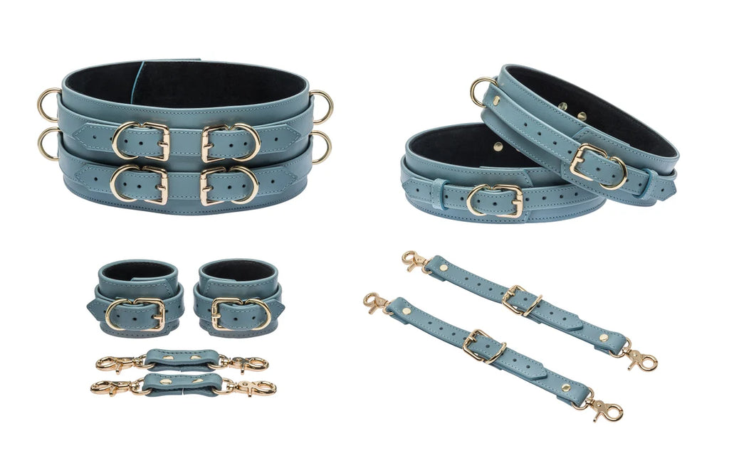 • Full Set consist: Waist belt, Thigh Cuffs (with 2 connectors), Handcuffs (with 2 connectors), collar and leash;